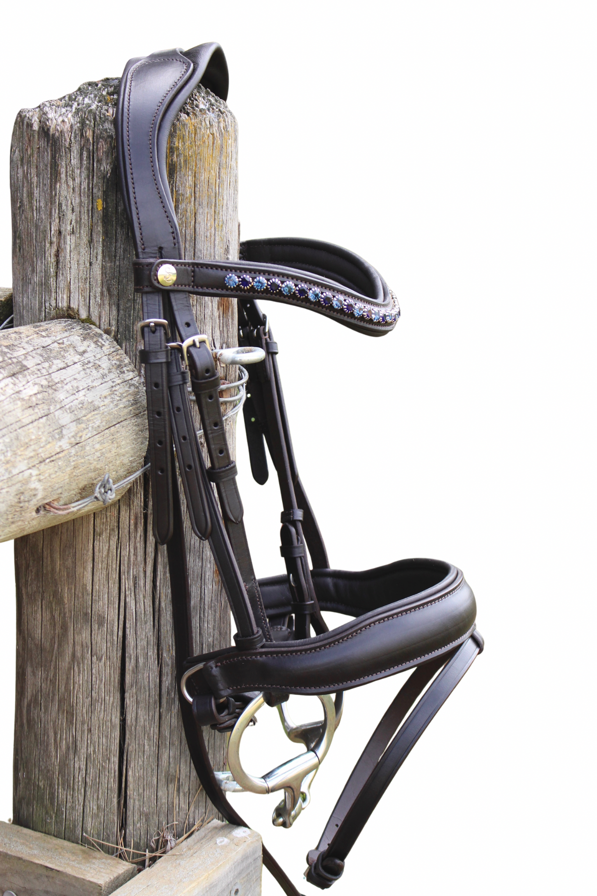 The anatomically shaped, gel-padded headpiece is carefully de-signed to reduce pressure on the poll, while the contoured noseband follows the natural line of the cheekbones and nose to provide a secure yet comfortable fit. A crank-style, gel-padded closure ensures stability without compromising on comfort.
